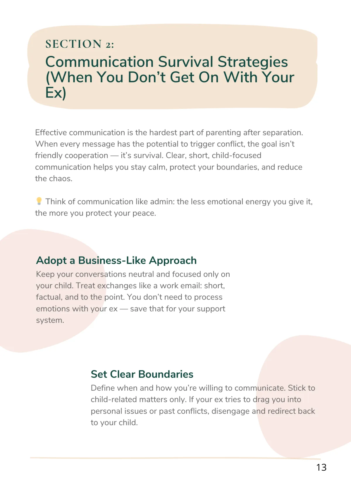 "My daughter used to come home from her dad's upset because she felt caught in the middle. The scripts for protecting kids from adult issues have completely changed our dynamic. She's happier and so am I."