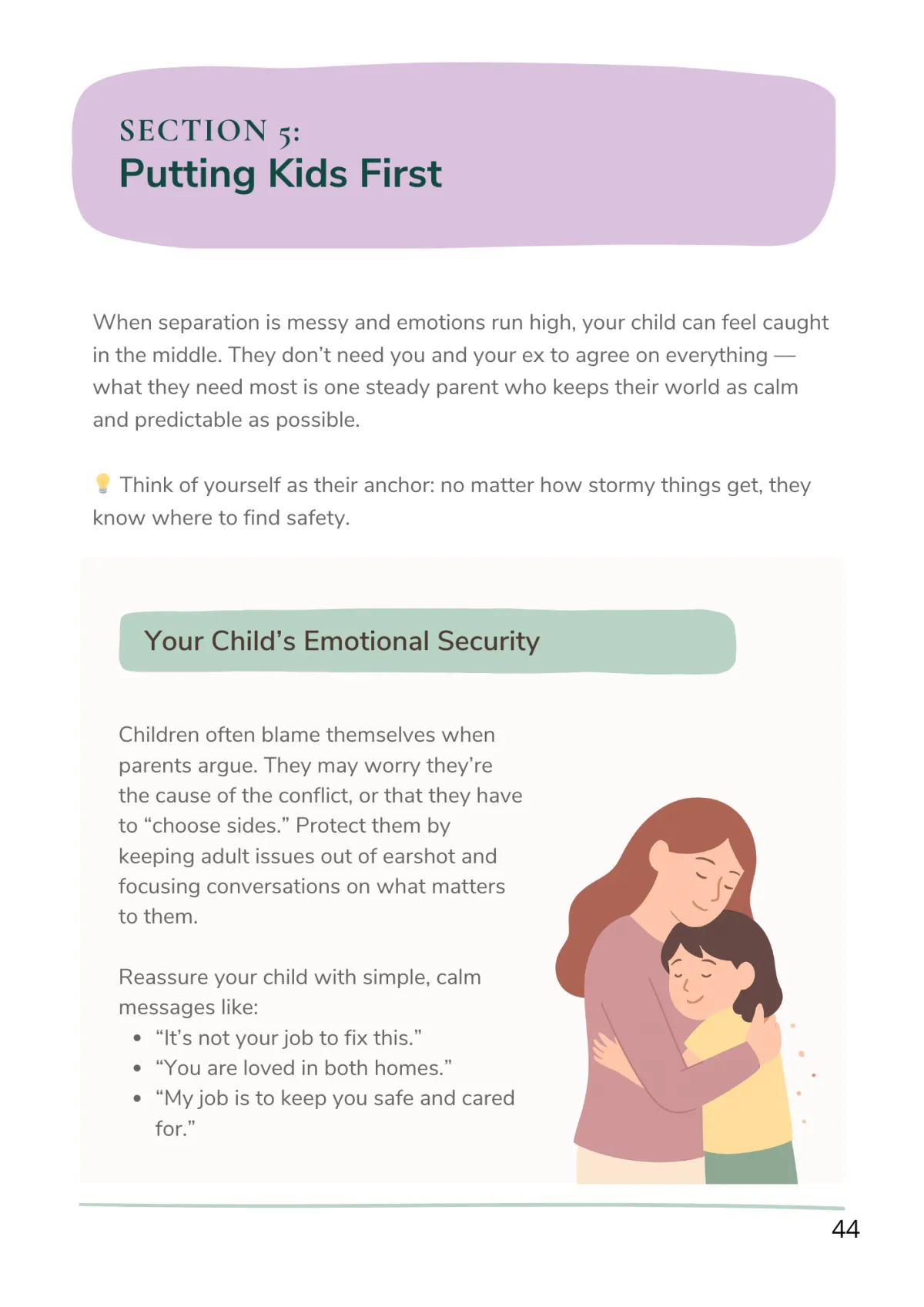 Through trial and error, I created simple scripts, boundaries, and child-focused routines that stopped the chaos and gave my child stability. That’s what’s inside this guide — the exact system that finally gave me peace.
